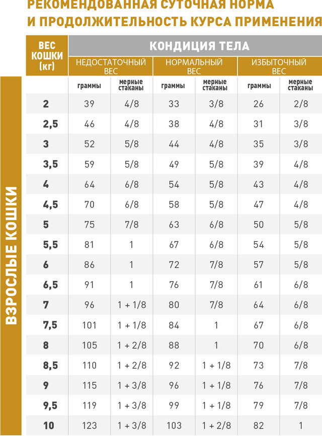 Рис, пшеничний глютен *, дегідратовані протеїни м'яса птиці, кукурудзяне борошно, тваринні жири, гідролізат білків тваринного походження, кукурудзяний глютен, мінеральні речовини, рослинна клітковина, риб'ячий жир, соєва олія, фруктоолігосахариди, екстракт оксамитців прямостійних (джерело лютеїну).
